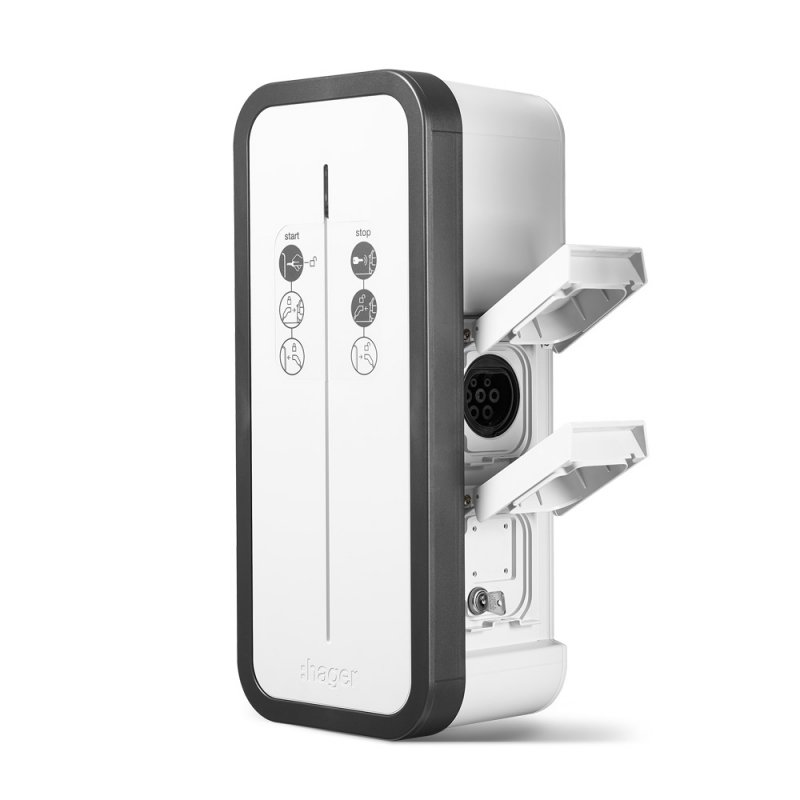 HAGER borne de recharge monophasé Witty Start idéale pour la maison ou l’entreprise, réglable de 2,3 à 7,4kW, accès sécurisé par clés