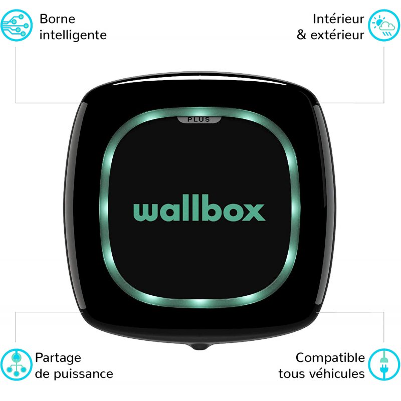 WALLBOX Borne de recharge Pulsar Plus – câble attaché 7m Type 2 – 1,4 à 7,4kW – monophasé – Bluetooth – Wifi
